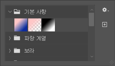 그라디언트 기본 사항에 첫번째와 세번째가 같은 느낌으로 보이지만 뒤에는 흑백으로 고정이라는걸 알 수 있다.